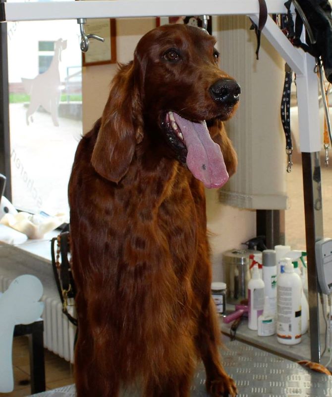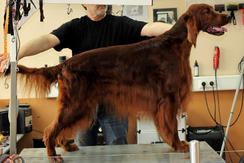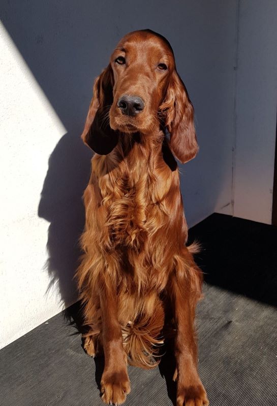 So sieht für mich ein gepflegter, korrekt getrimmter Irish Setter aus. Salino war übrigens auf Austellungen sehr erfolgreich und errang den Titel Deutscher Champion (VDH). Er wird am 27.3.2022 10 Jahre alt und ist" in Rente ".