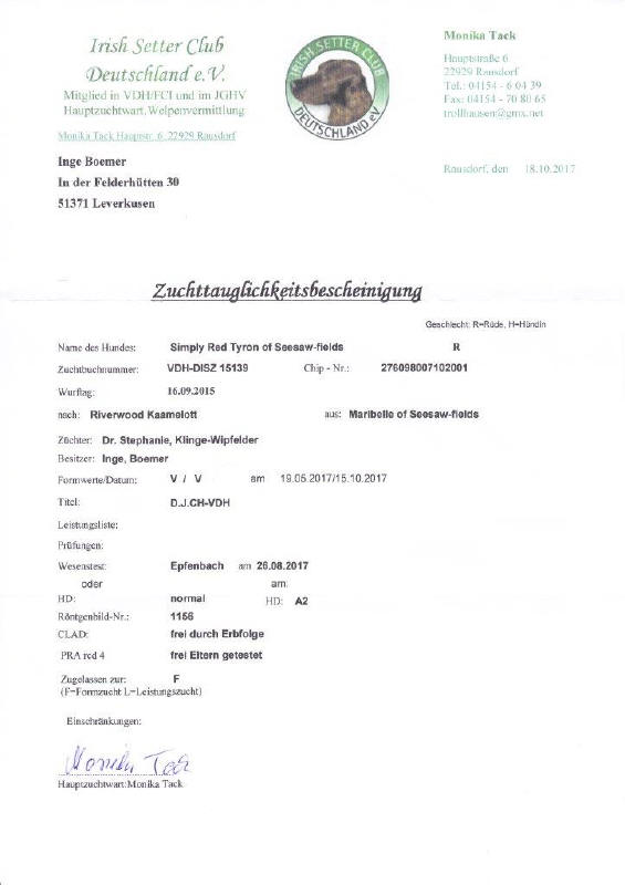 1.Zwinger "Pride of Tara " von Ulf und Regina Penderock