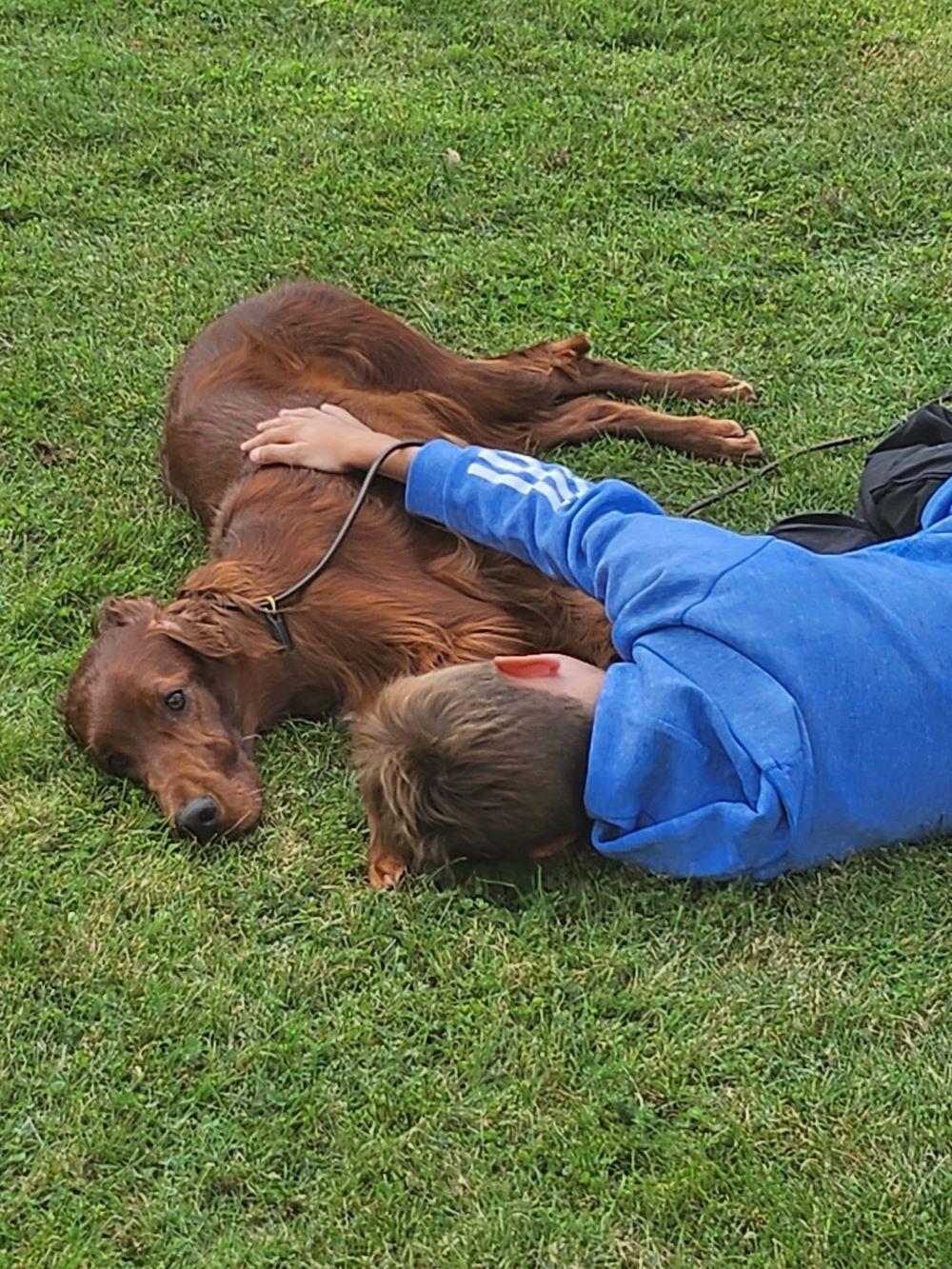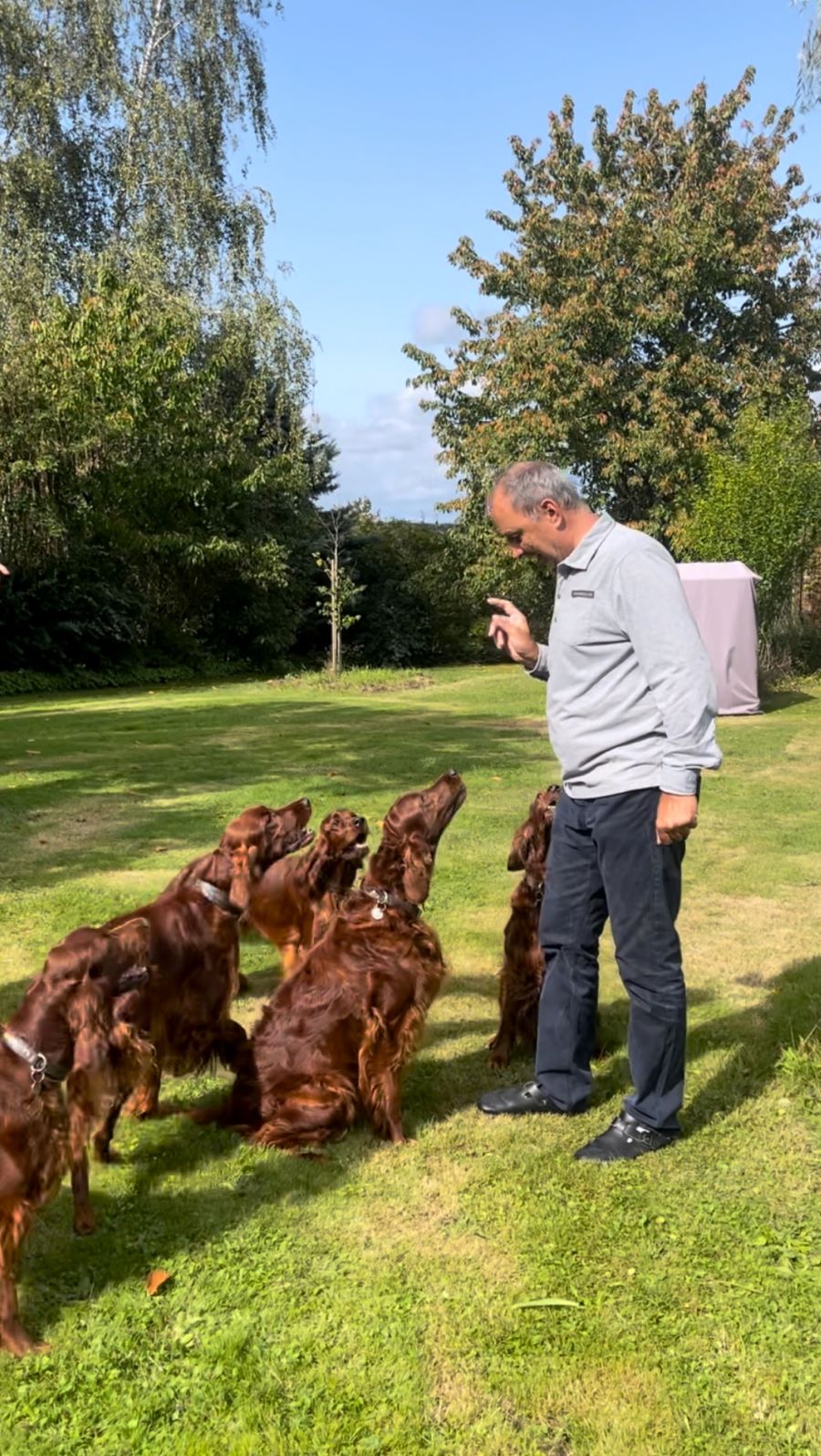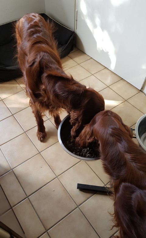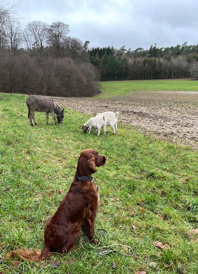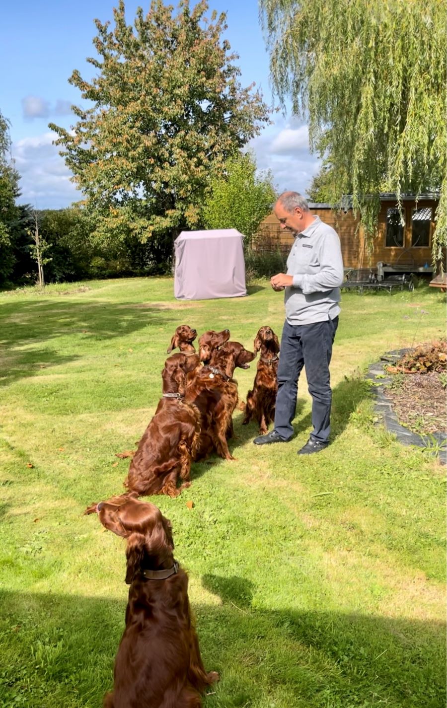 Ich hatte als Züchterin das große Glück, prima Setterleute für meine Welpen zu finden. Die 13 werden als Familienmitglieder geliebt, gepflegt und haben viel Auslauf. Einige betreiben mit ihren Besitzern Mantrailing, Agility, Apporttraining u.ä.