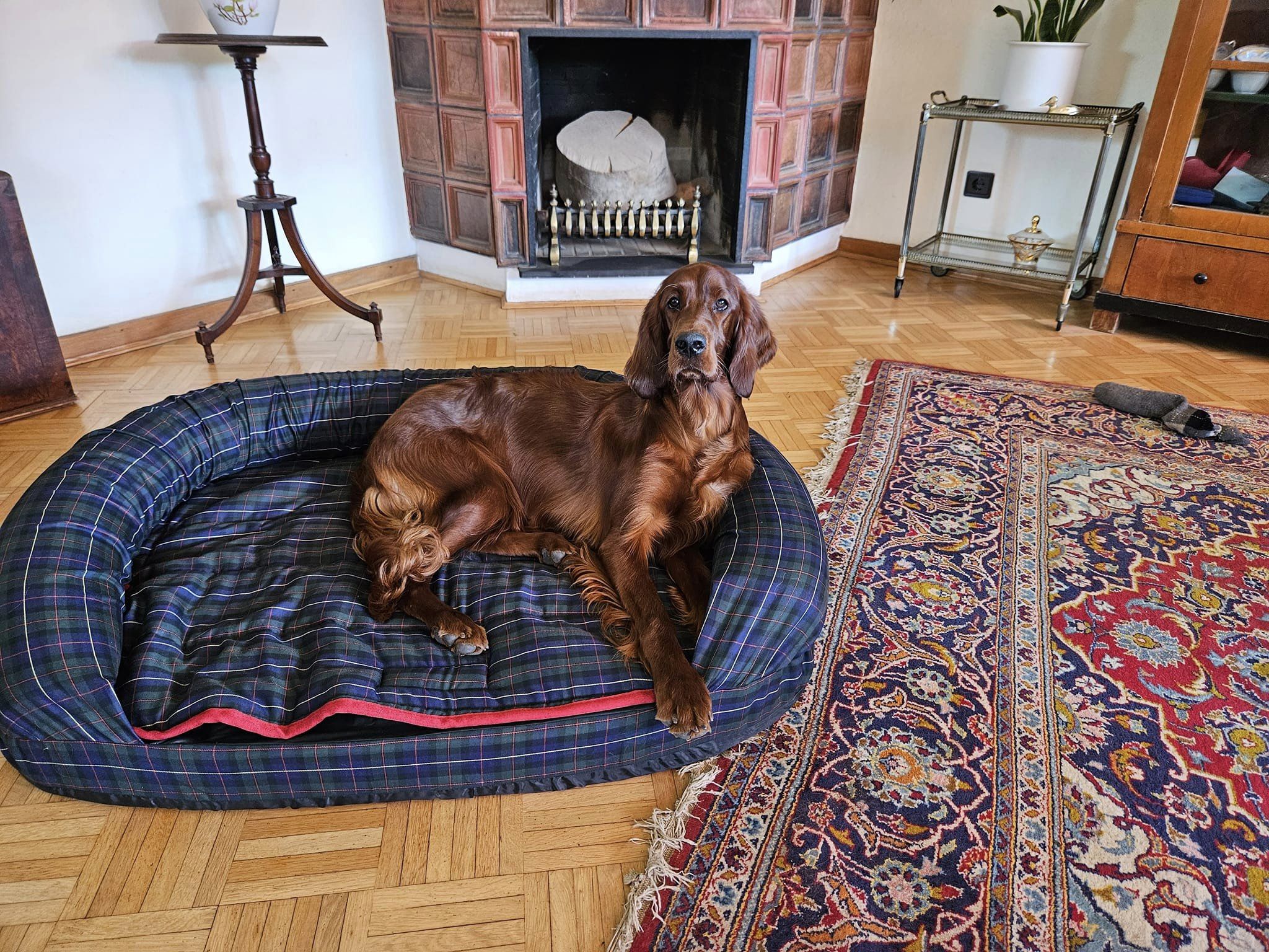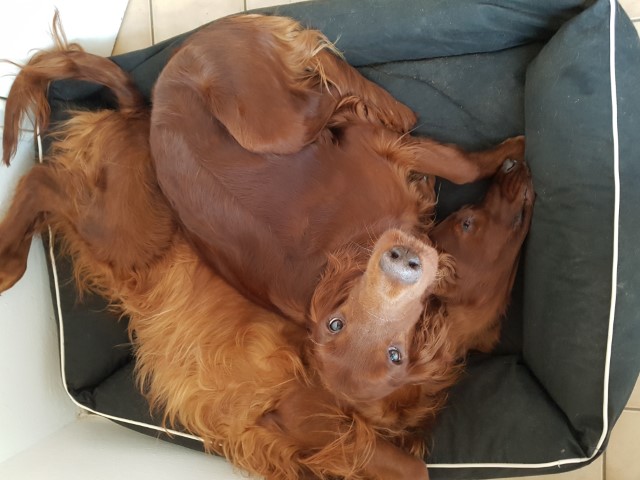 Da eines der alten Hundebetten verschlissen war, habe ich meinen Mädels ein Neues bei Romneys bestellt. Ich hatte es gerade ausgepackt, da musste Wickie es schon einweihen.