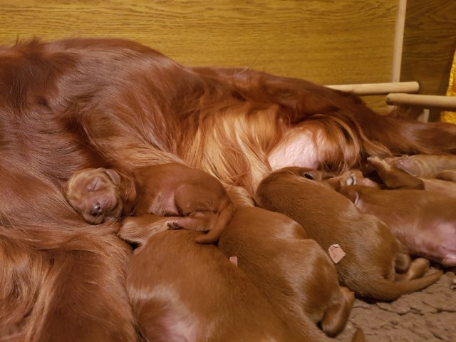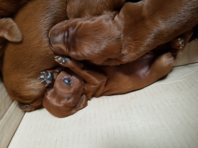 Die beiden Brothers in red of Seesaw-fields kommen zur Welt. Papa ist der Multi-Ch. Glennlokhen Macallan gen. Mr. Ice, Mama Very best friend Meghan of Seesaw-fields.
