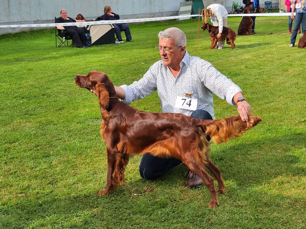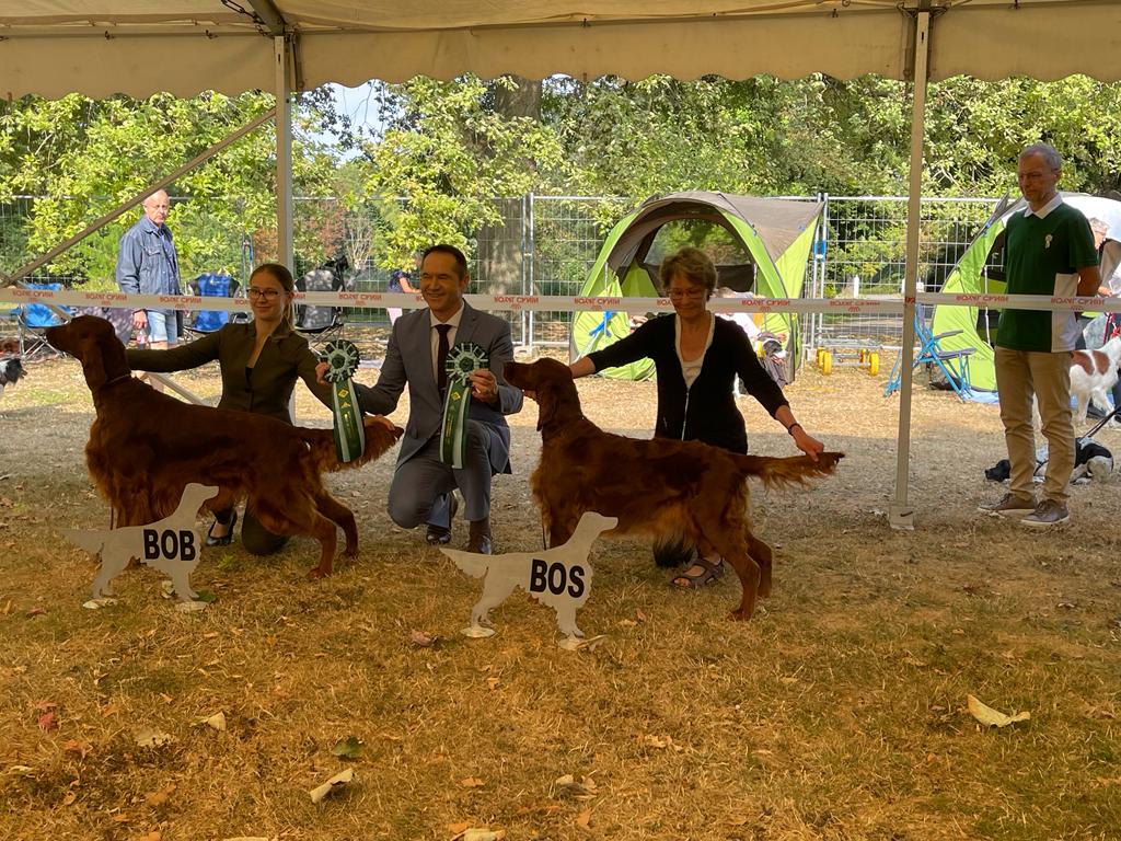 Nice to see you Miles : Championklasse V1, Anw., CACIB ( = bester Irish Setter Rüde ), BOB (= bester Irish Setter )